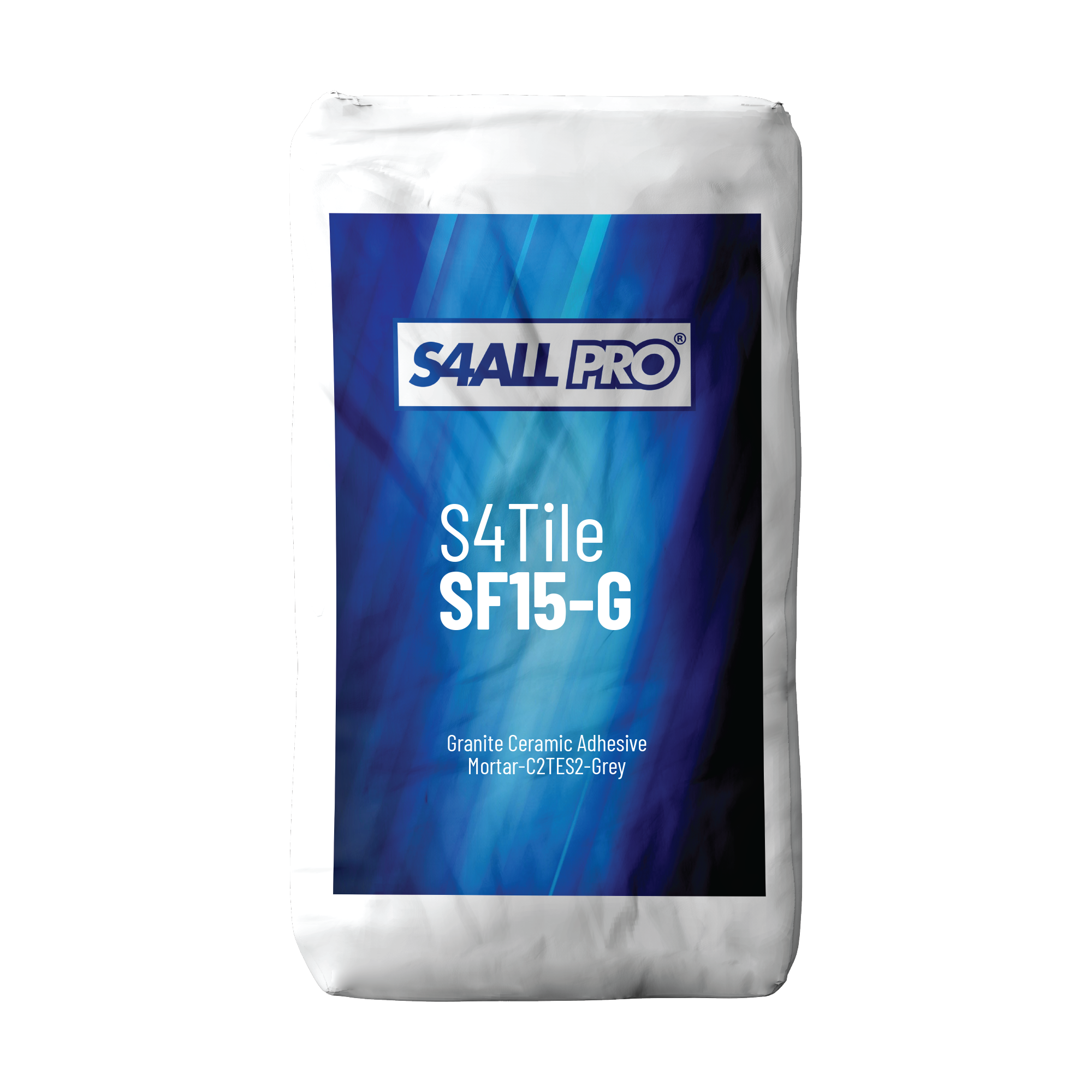 S4Tile SF 15 is a high-performance, cement-based adhesive mortar with polymer additives, classified under C2TES2 standards. This flexible mortar provides superior adhesion strength, high stability, and is designed for both horizontal and vertical applications, making it suitable for a wide range of professional tiling jobs.